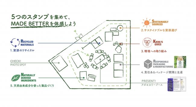 イベントでは、キールズが掲げた新たなミッション「MADE BETTER」の5つの約束を体感できる5つのブースを展開。「MADE BETTER」とは、天然由来成分配合のスキンケア製品の開発や環境破壊を招かない資源の選定など、よりよい未来を創っていくことを約束するものです。